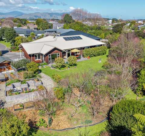 Built in 2016, the eco-designed quality 4-bedroom home is positioned for all-day sun, offering garden views from every room. Thoughtfully crafted for accessibility, it features attractive cedar cladding, ducted heating, cosy logburner and spacious laundry. The extra-large garage includes excellent storage and workshop space. Multiple decks and an enclosed courtyard provide safe, sun-filled areas ideal for children and pets to play. Set on a fully fenced double section of almost half an acre, the property is a true garden lover's heaven. Expansive lawns offer plenty of room for outdoor games, exploring, and everyday play, while the beautifully curated mix of native and exotic planting, fruit trees, grapevines, and raised vegetable beds creates a vibrant, engaging environment. A generous garden shed with external potting bench and a separate woodshed add practicality.